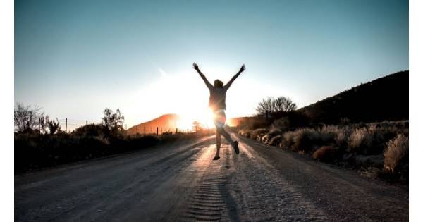 A person joyfully leaping on a sunlit road symbolizing lifestyle changes and new identity after accepting Christ.