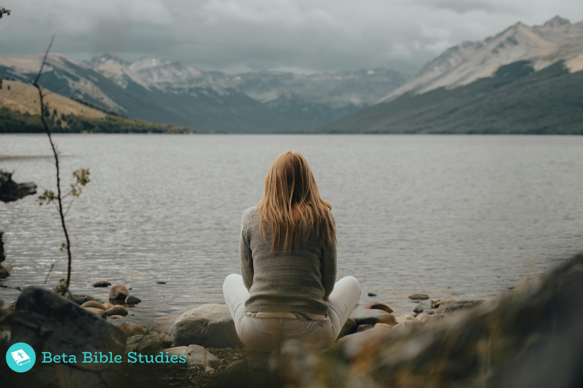 Person sitting quietly by a lake surrounded by mountains, reflecting on peace, wisdom, and why boundaries matter in a balanced life as a christian.